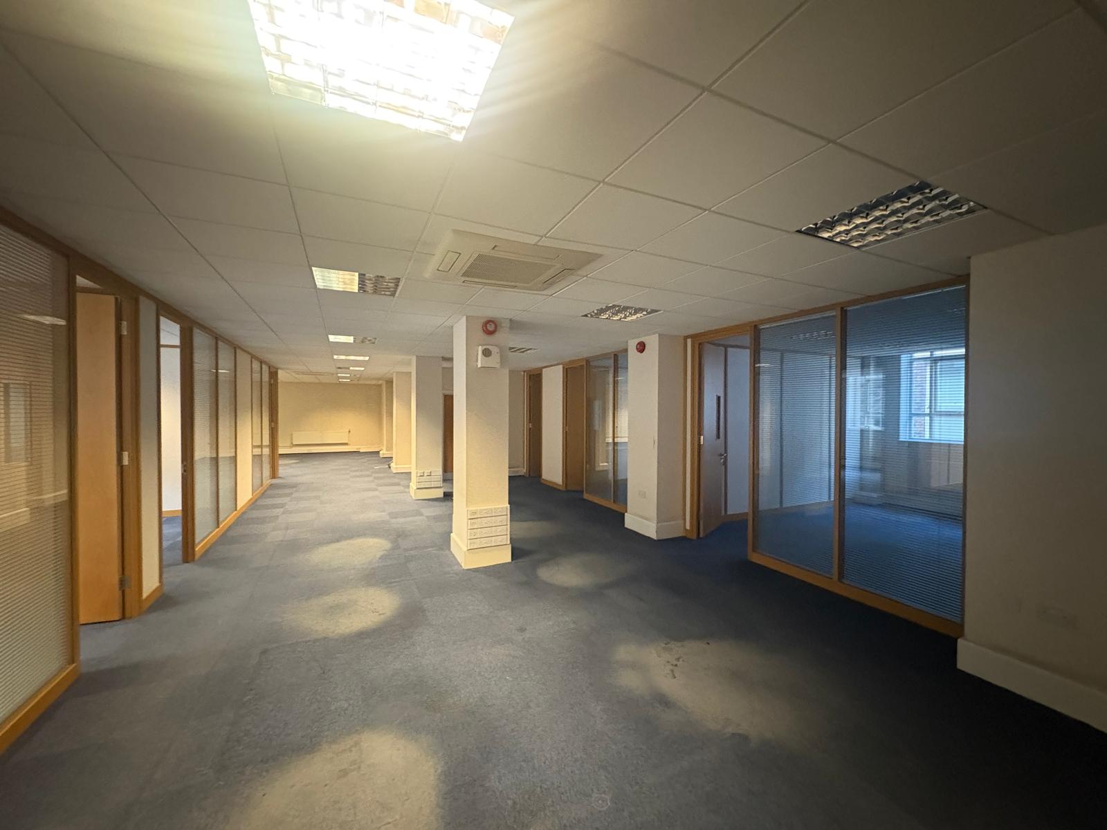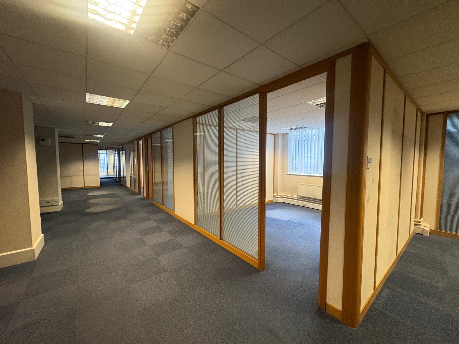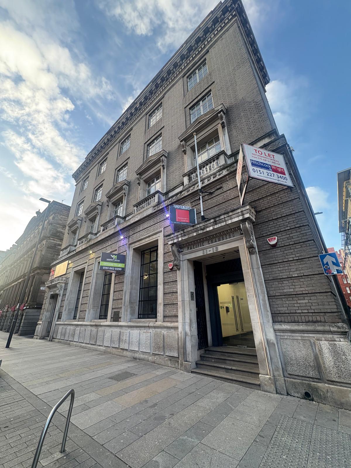 4,094 sq ft in Pacific Chambers, situated in the bustling central business district of Liverpool. Overlooking Victoria Street, the suite benefits from air conditioning, excellent natural light, own kitchen and toilet facilities. The suite is accessed directly off the main lift foyer to a generous central corridor that could easily be transformed into additional workspace, breakout zones etc. The suite also offers numerous private offices lining the perimeter ideal for management rooms, meeting spaces or quiet work areas.